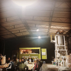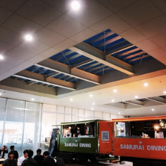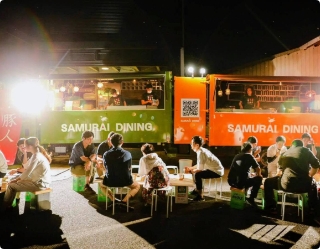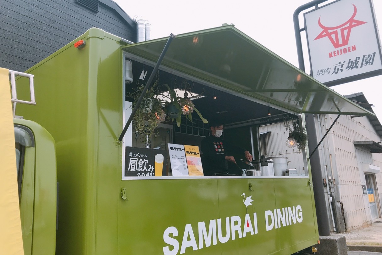 走る居酒屋、サムライカレー、牛カルビ溶岩焼肉、牛ハラ...