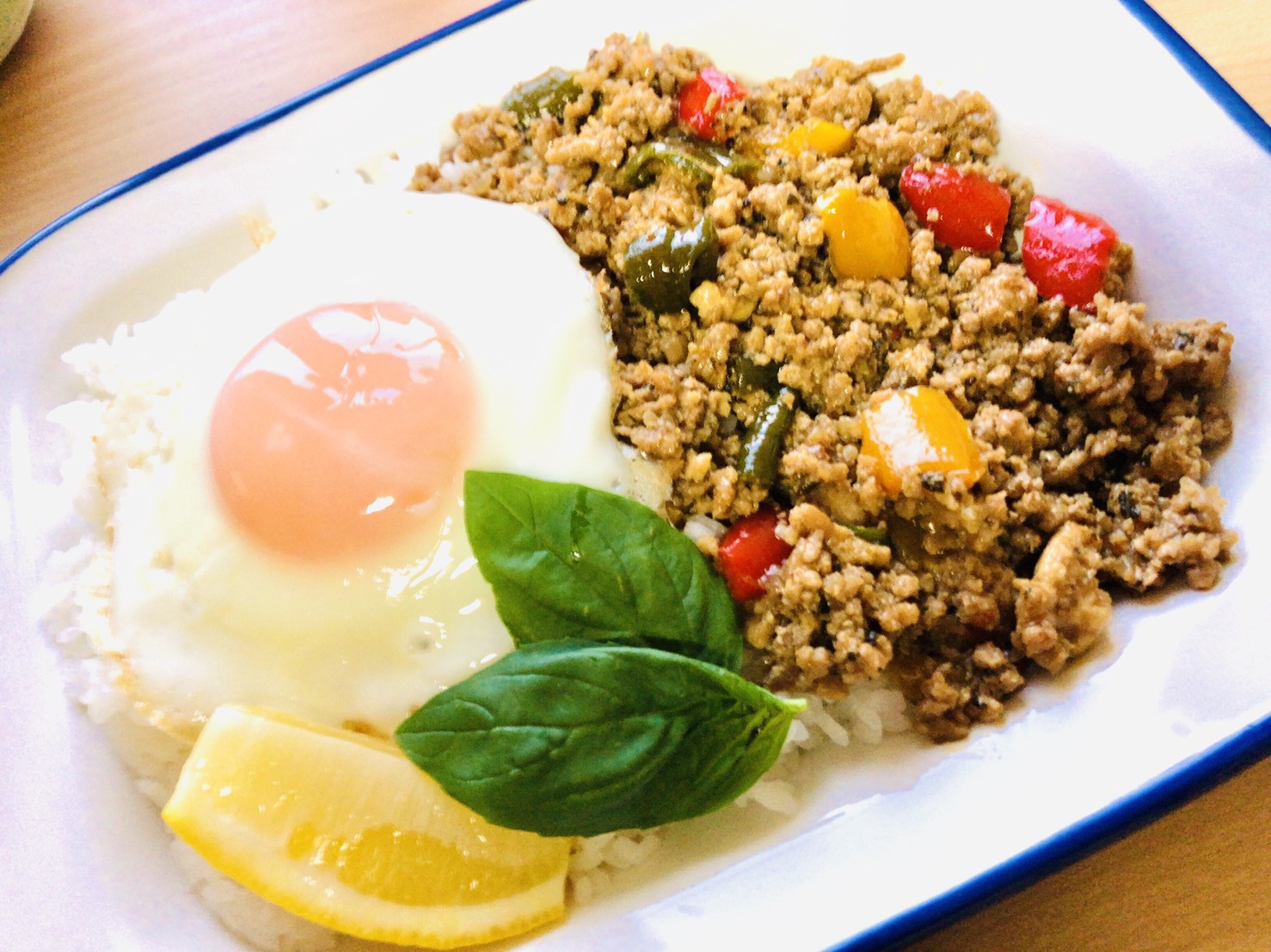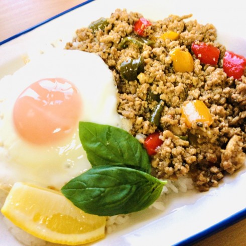 - おにぎりサンド、豚汁、ガパオライス、グリーンカレー、ドリンク