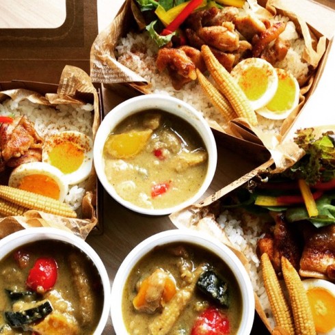 - おにぎりサンド、豚汁、ガパオライス、グリーンカレー、ドリンク